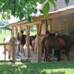 Pour leur bien-être, tous nos poneys vivent au pré. Lorsque les enfants viennent au poney club, les poneys sont rentrés dans les écuries, en boxe ou stabulation.